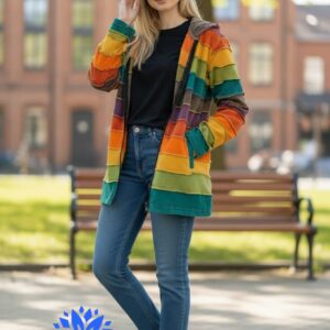 FELPA DONNA IN COTONE ARCOBALENO STONEWASH CON CAPPUCCIO
