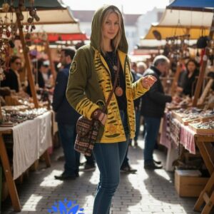 FELPA DONNA IN COTONE FIORE STONEWASH CON CAPPUCCIO OCRA VERDE