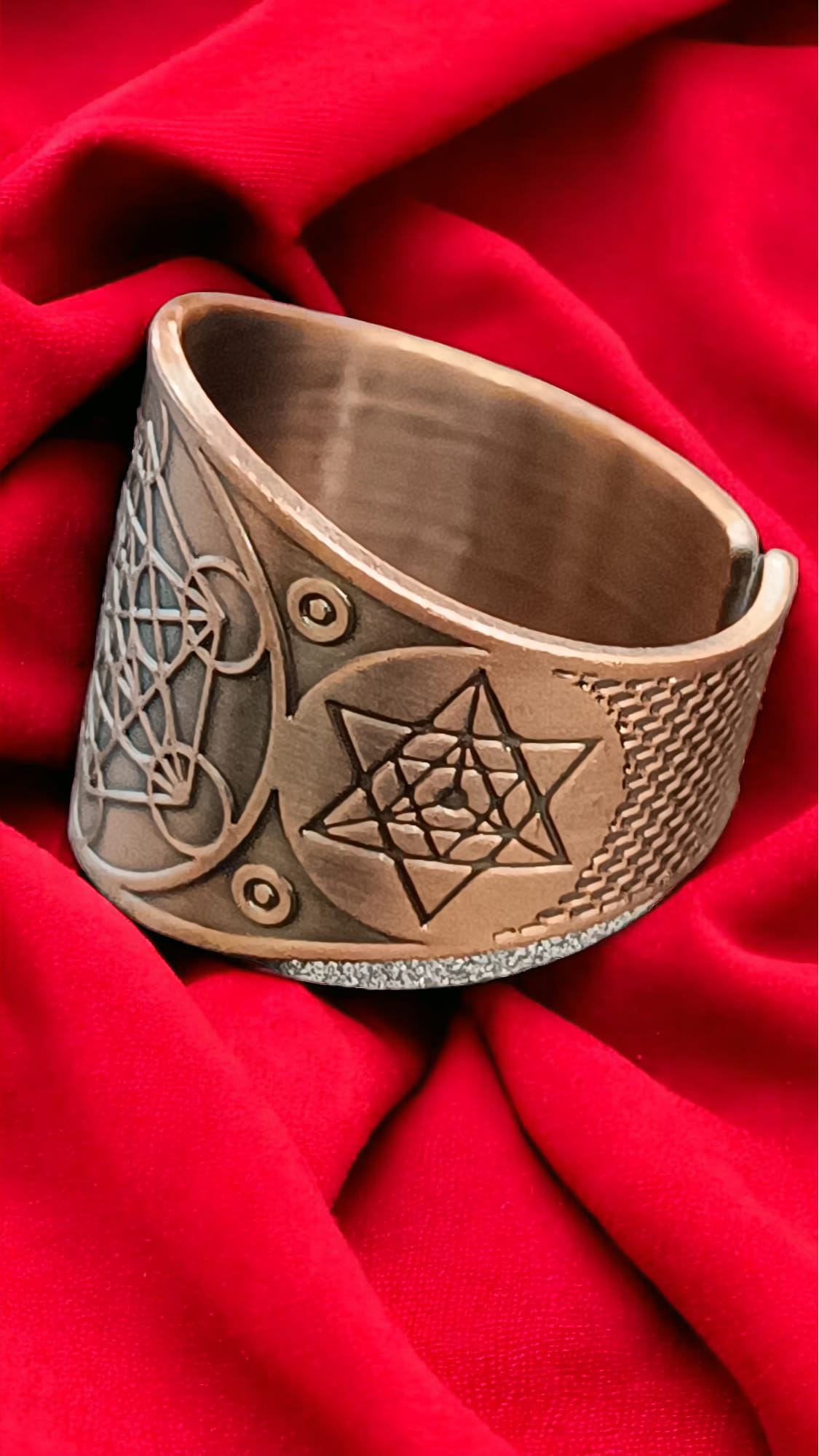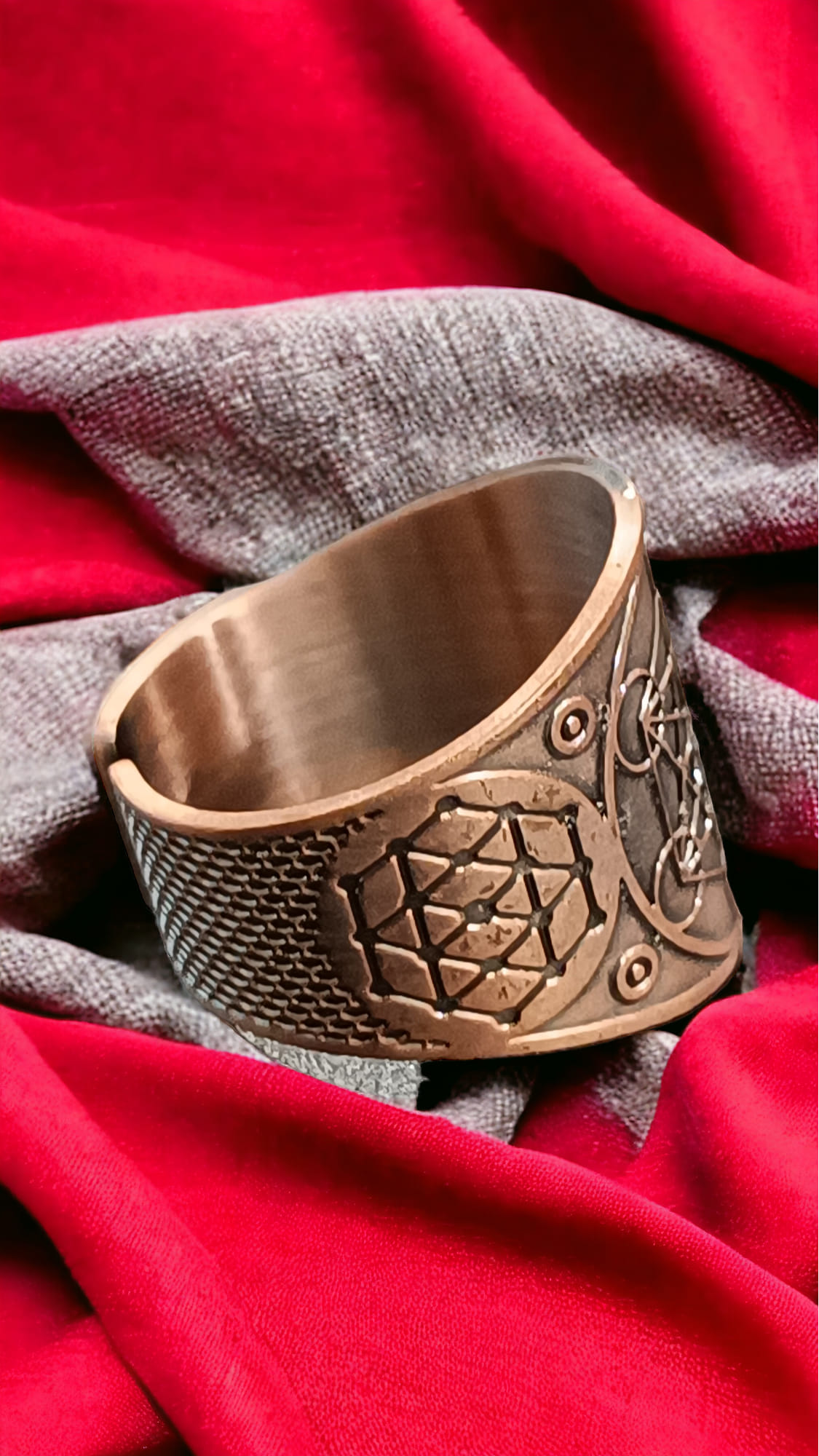 Realizzati in rame, simbolo di energia e connessione spirituale, questi anelli sono perfetti per chi cerca un accessorio potente e significativo.